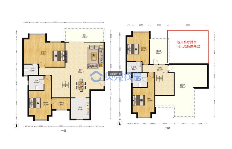 房子搭板之后可以做七房?jī)蓮d四衛(wèi),雙湖景陽(yáng)臺(tái),雙露臺(tái)。