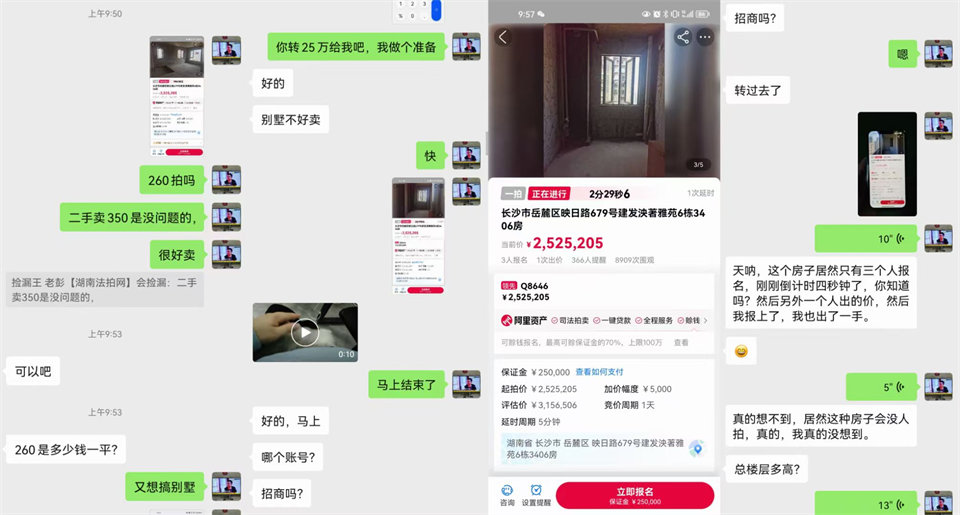 實際房子沒什么撿漏因素,我覺得應該會280-300萬有戲,甚至破300萬的。沒想到最后就3個人報名拍(其中還有個人報了2個名,因為全程有個人沒出價),我9點50多分的時候還在外面看房,打開手機一看就3個人,又這么便宜,不拍太可惜了,就想著260萬去試試(根本沒指望能拍到)。