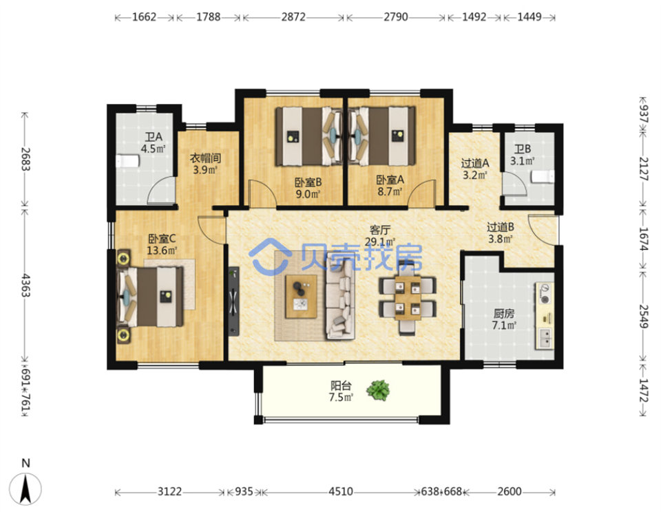 房子在9樓,121平,精裝,南北通透,橫廳,三房兩廳兩衛(wèi),191萬成交,單價1.57萬一平。