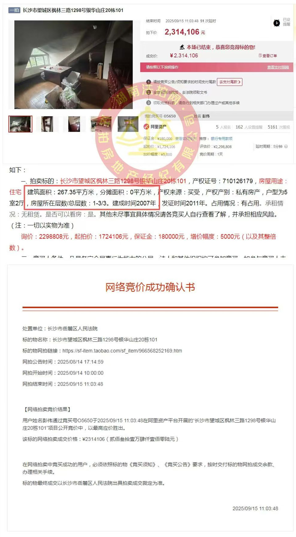 172萬起拍,夢想著能底價撿漏,結(jié)果5個人搶,最后加了60多萬,231.4萬拿下,精裝單價8666元,倒是還在預(yù)算內(nèi),也挺滿足了。