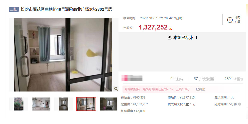 在湖南法拍網(wǎng)法拍房地產(chǎn)經(jīng)紀(jì)有限公司的輔助競(jìng)拍下,龔叔拍了套長(zhǎng)沙五江天街的精裝修法拍房,不僅沒坑,還撿漏了十幾萬(wàn),恭喜恭喜。