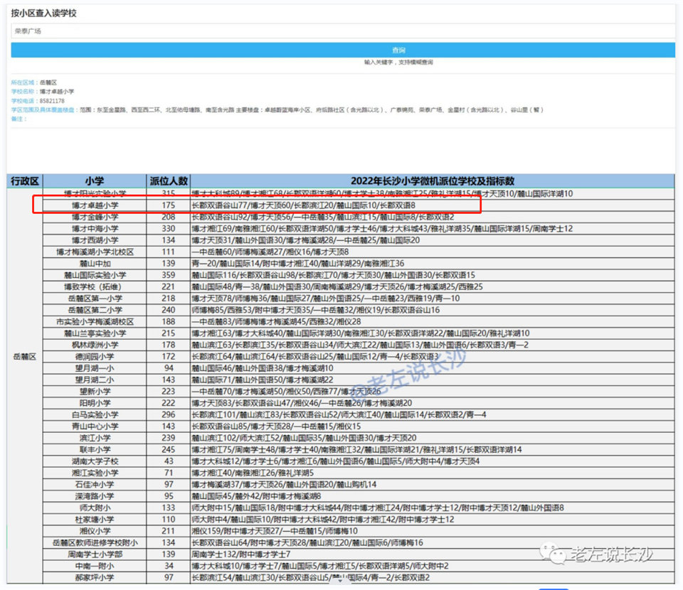 學校好,配套博才卓越小學(非常好的小學),其中學派位都是好學校(見圖9,派位長郡雙語,麓山國際,長郡雙語谷山,長郡濱江,博才天頂,都好)。