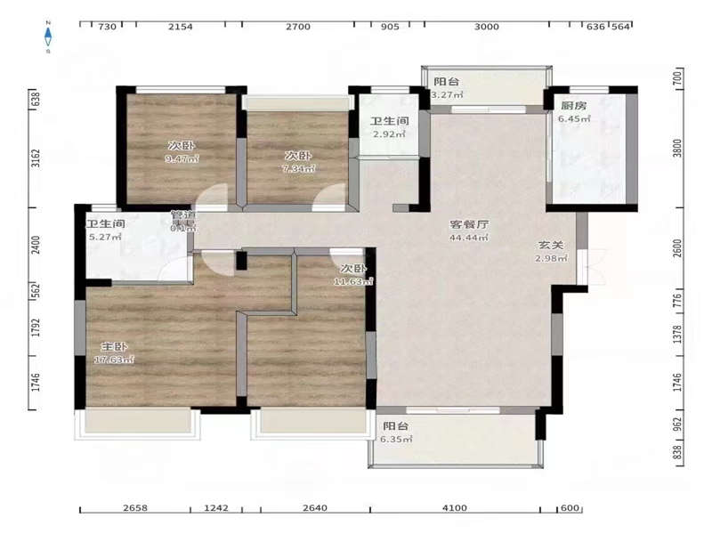 | 房屋戶型 | 4室2廳2衛(wèi) | ||