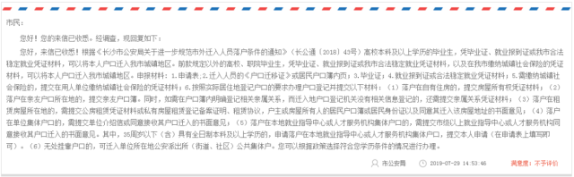 關(guān)于往屆畢業(yè)生落戶問題,市長信箱也有詳細(xì)答復(fù):