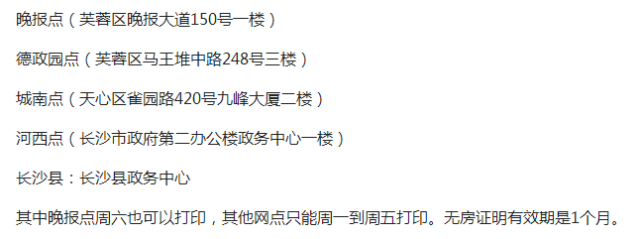 目前,長沙全市無房證明打印共5個(gè)網(wǎng)點(diǎn):